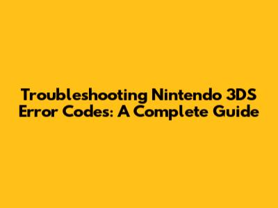 Troubleshooting Nintendo 3DS Error Codes: A Complete Guide