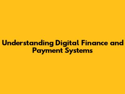 Understanding Digital Finance And Payment Systems