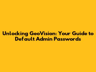 Unlocking GeoVision: Your Guide To Default Admin Passwords