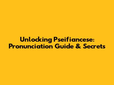 Unlocking Pseifiancese: Pronunciation Guide & Secrets