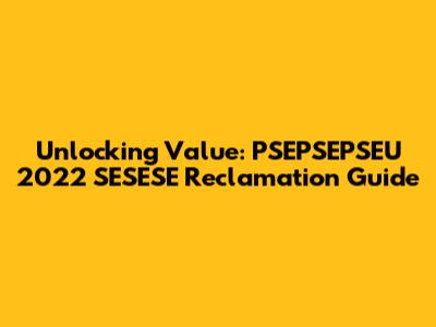 Unlocking Value: PSEPSEPSEU 2022 SESESE Reclamation Guide