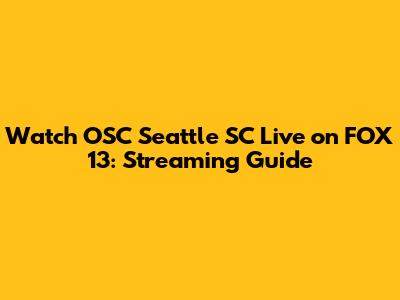 Watch OSC Seattle SC Live On FOX 13: Streaming Guide